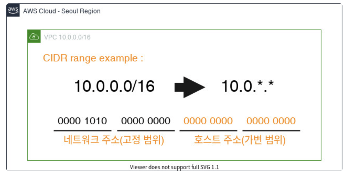 - VPC๋ฅผ ๊ตฌ์ฑํ ๋ CIDR ๊ฐ์ด ์๋ค๋ฉด VPC๋ 16์ ์๋ธ๋ท ๊ฐ์ผ๋ก ํ๋ IP์ ์ฃผ์ ๋ฒ์๋ฅผ ๋ํ๋ด๋ ๊ฒ